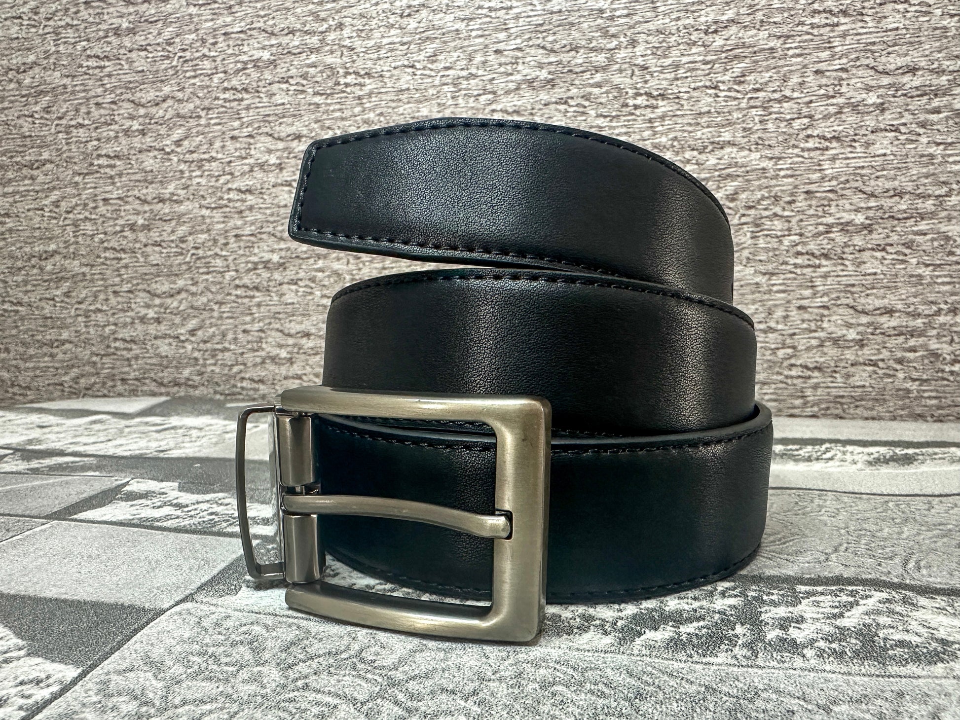 Cinturón negro, hebilla gris grafito