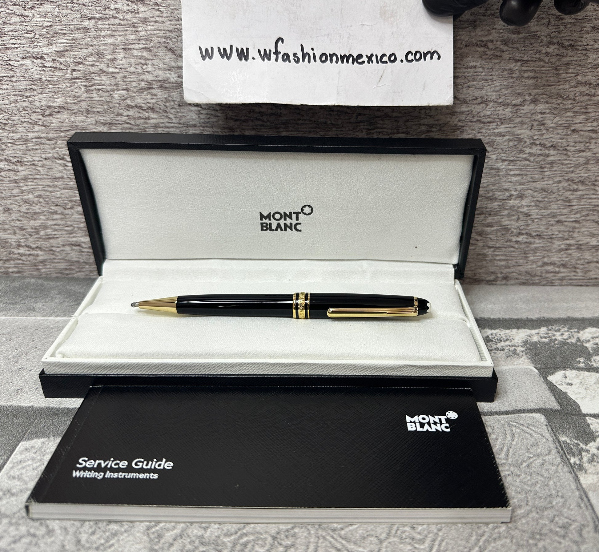 Pluma Clásica MB, tipo bolígrafo, negra con dorado, hecha de resina, calidad AAA, 1:1, espejo (es la mejor calidad que hay en este tipo de productos).